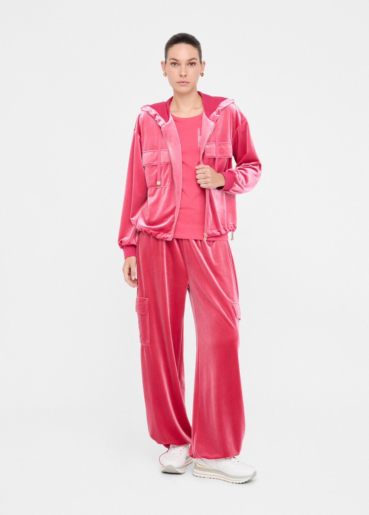 - 92 % polyesteriä, 8 % elastaania – pehmeä, joustava velour-kangas